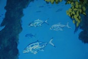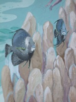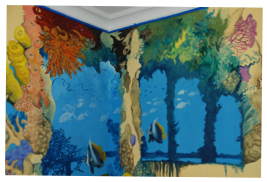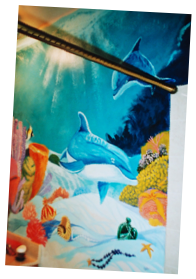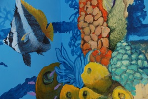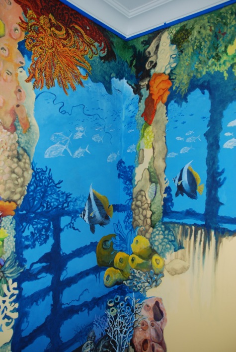 The above wall mural included 23 different species of fish, plus 5 “hidden images,” as per client’s request.