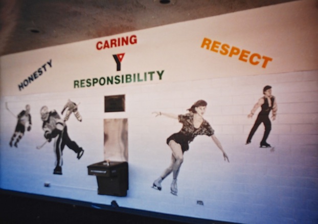 THE YMCA (Elmhurst), SKATING RINK FACILITY WALL MURAL, 1999, approx. 15’W x 9.5’H on stone block wall